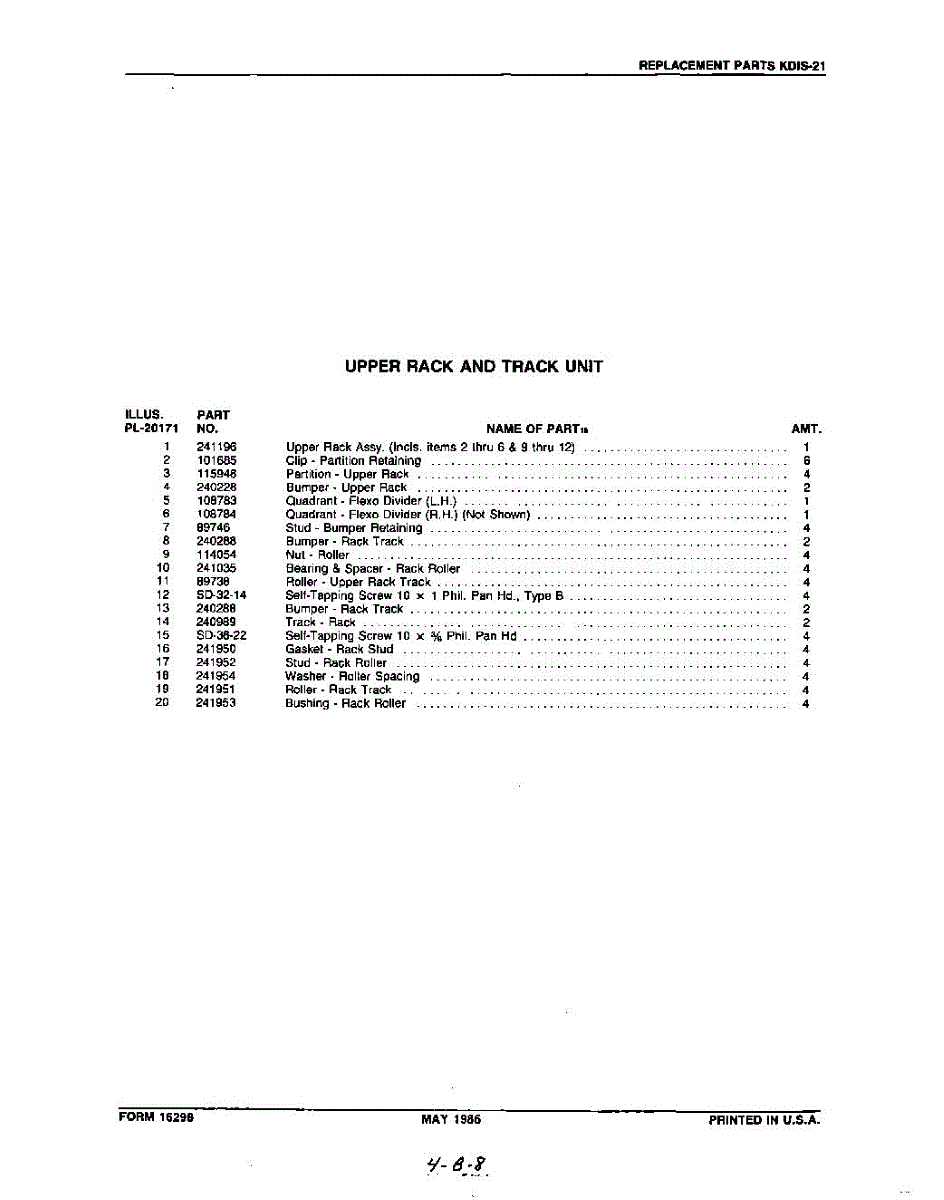 Parts for Kitchenaid KDIS21: 22 - Section Parts