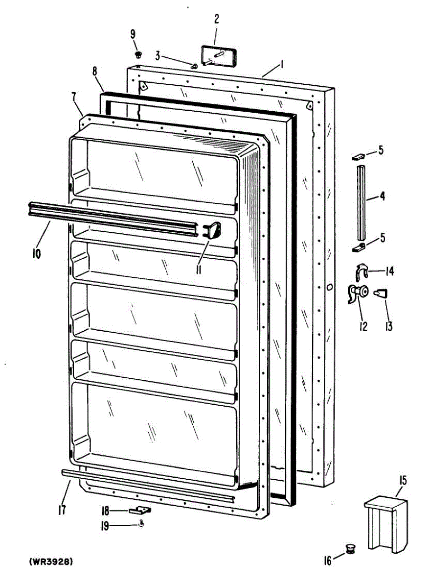 Hardware fasteners for securing refrigerator door panels and components. Includes screws, nuts, and washers for assembly. Replace missing or stripped pieces.