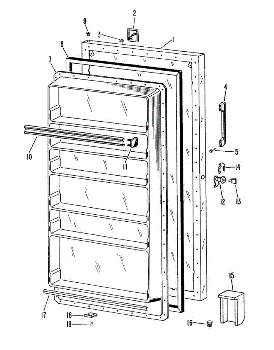 Hardware fasteners for securing refrigerator door panels and components. Includes screws, nuts, and washers for assembly. Replace missing or stripped pieces.