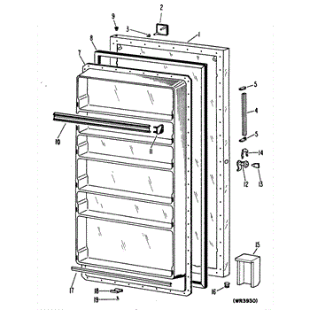 Hardware fasteners for securing refrigerator door panels and components. Includes screws, nuts, and washers for assembly. Replace missing or stripped pieces.