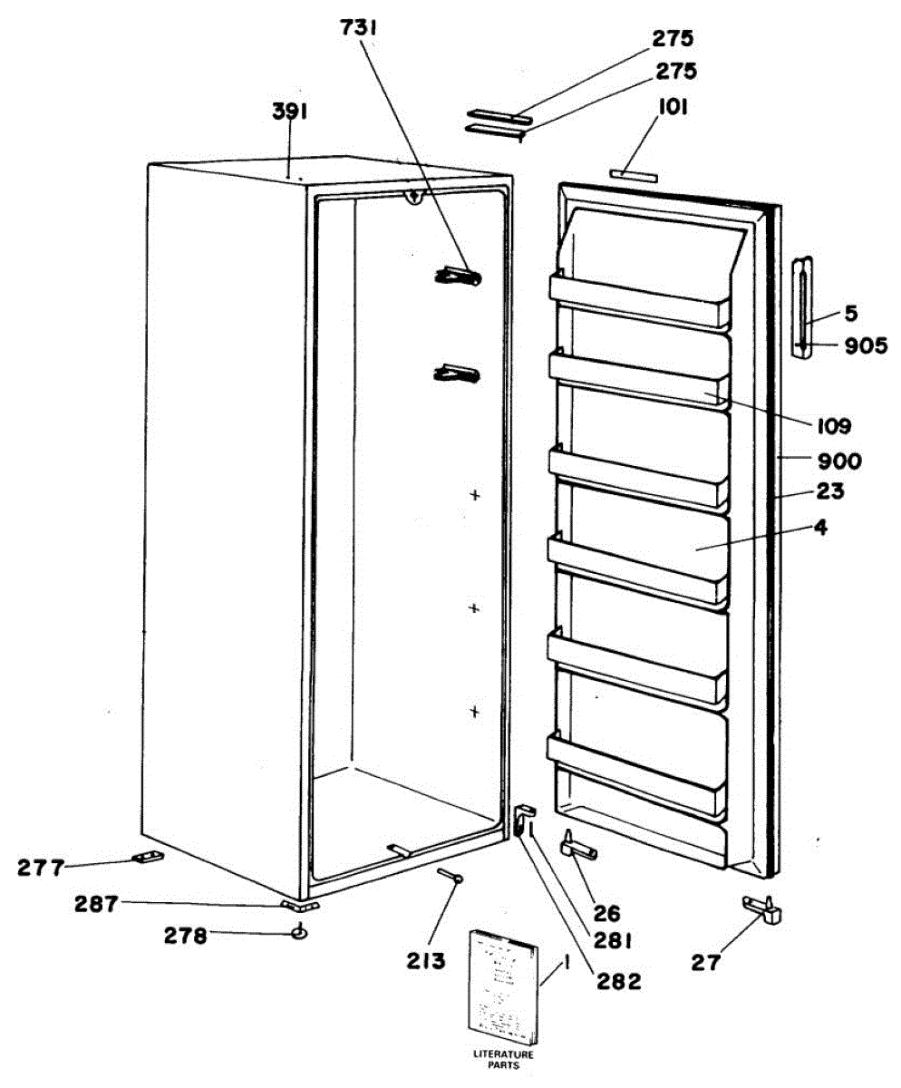 Left-side door stop cam riser for freezer doors. Replaces broken, cracked, or missing door stops. Installs on the door hinge to control swing.