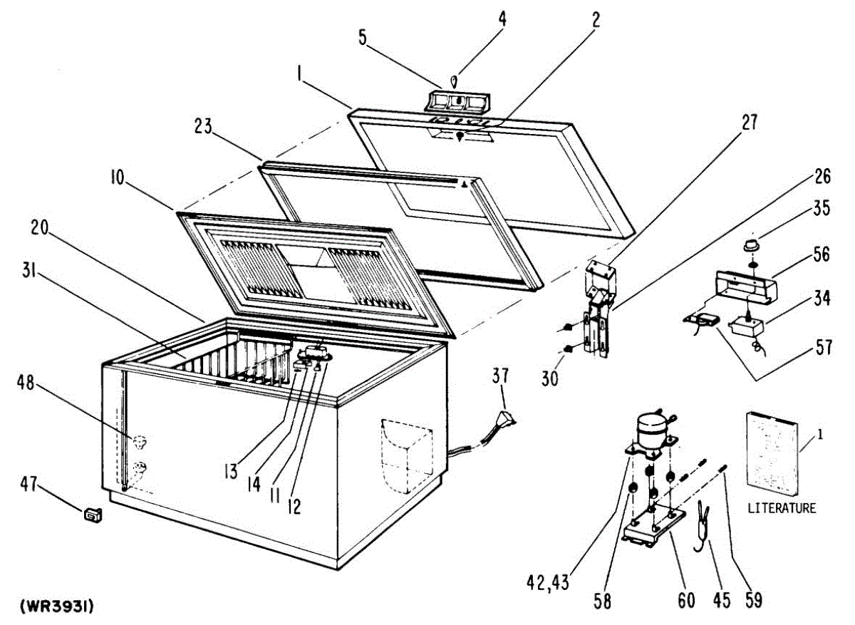 Supplies electrical power from wall outlet to refrigerator. Replace this cord if cut, frayed, overheated, or damaged to restore safe electrical connection.