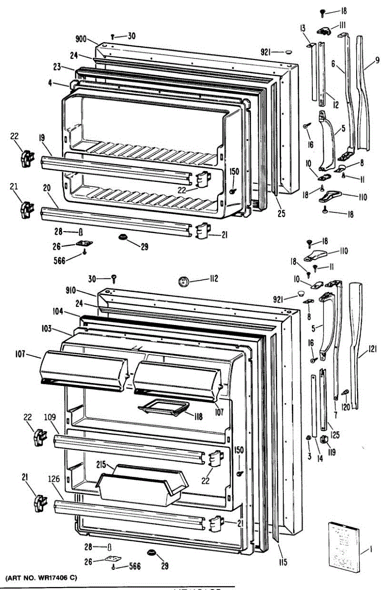 Hardware fasteners for securing refrigerator door panels and components. Includes screws, nuts, and washers for assembly. Replace missing or stripped pieces.