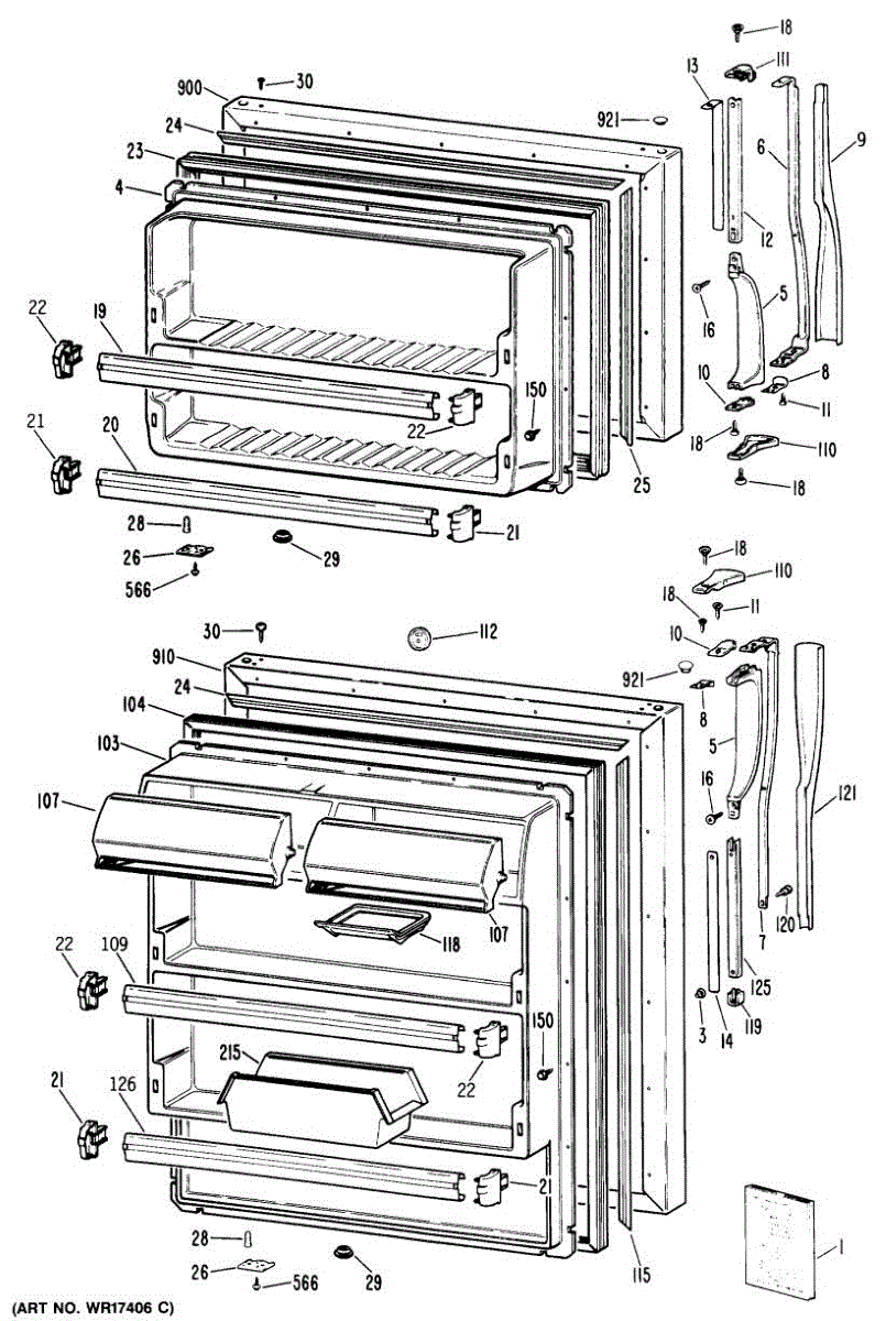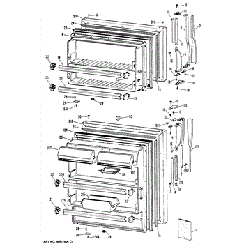 Hardware fasteners for securing refrigerator door panels and components. Includes screws, nuts, and washers for assembly. Replace missing or stripped pieces.