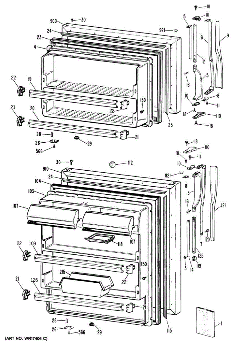 Hardware fasteners for securing refrigerator door panels and components. Includes screws, nuts, and washers for assembly. Replace missing or stripped pieces.