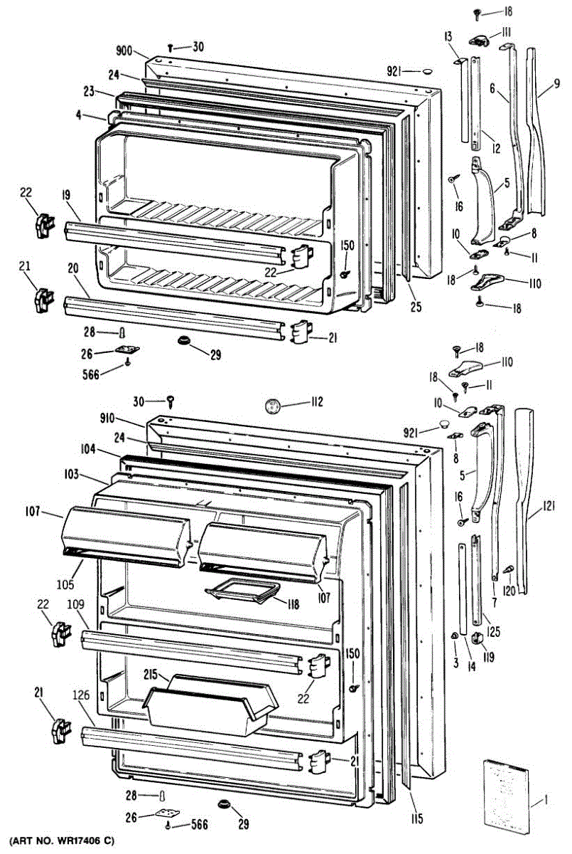 Hardware fasteners for securing refrigerator door panels and components. Includes screws, nuts, and washers for assembly. Replace missing or stripped pieces.