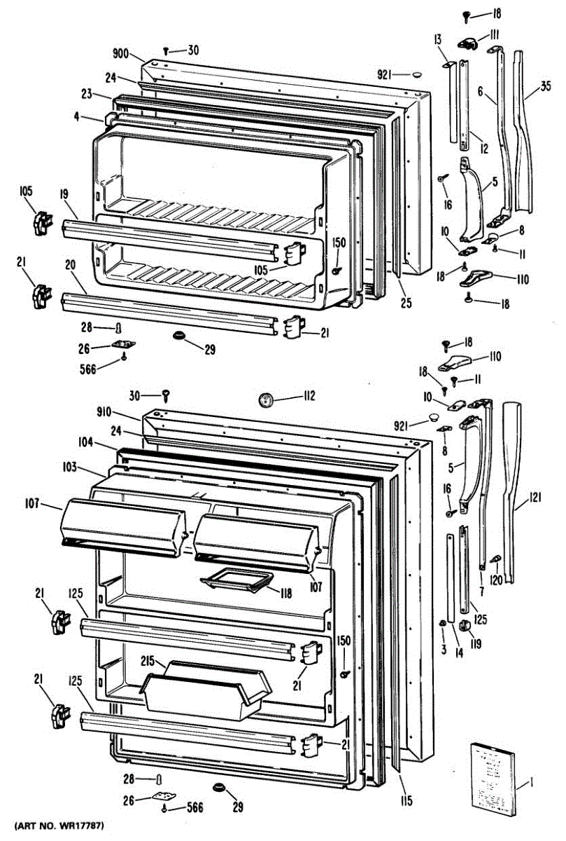 Hardware fasteners for securing refrigerator door panels and components. Includes screws, nuts, and washers for assembly. Replace missing or stripped pieces.