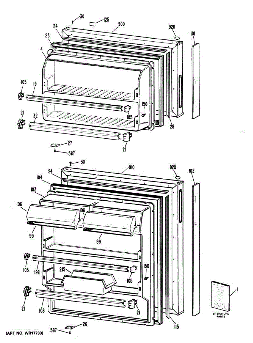White outer door panel for top-mount refrigerators. Replaces cracked, discolored, or damaged exterior door panels. Direct-fit replacement part.