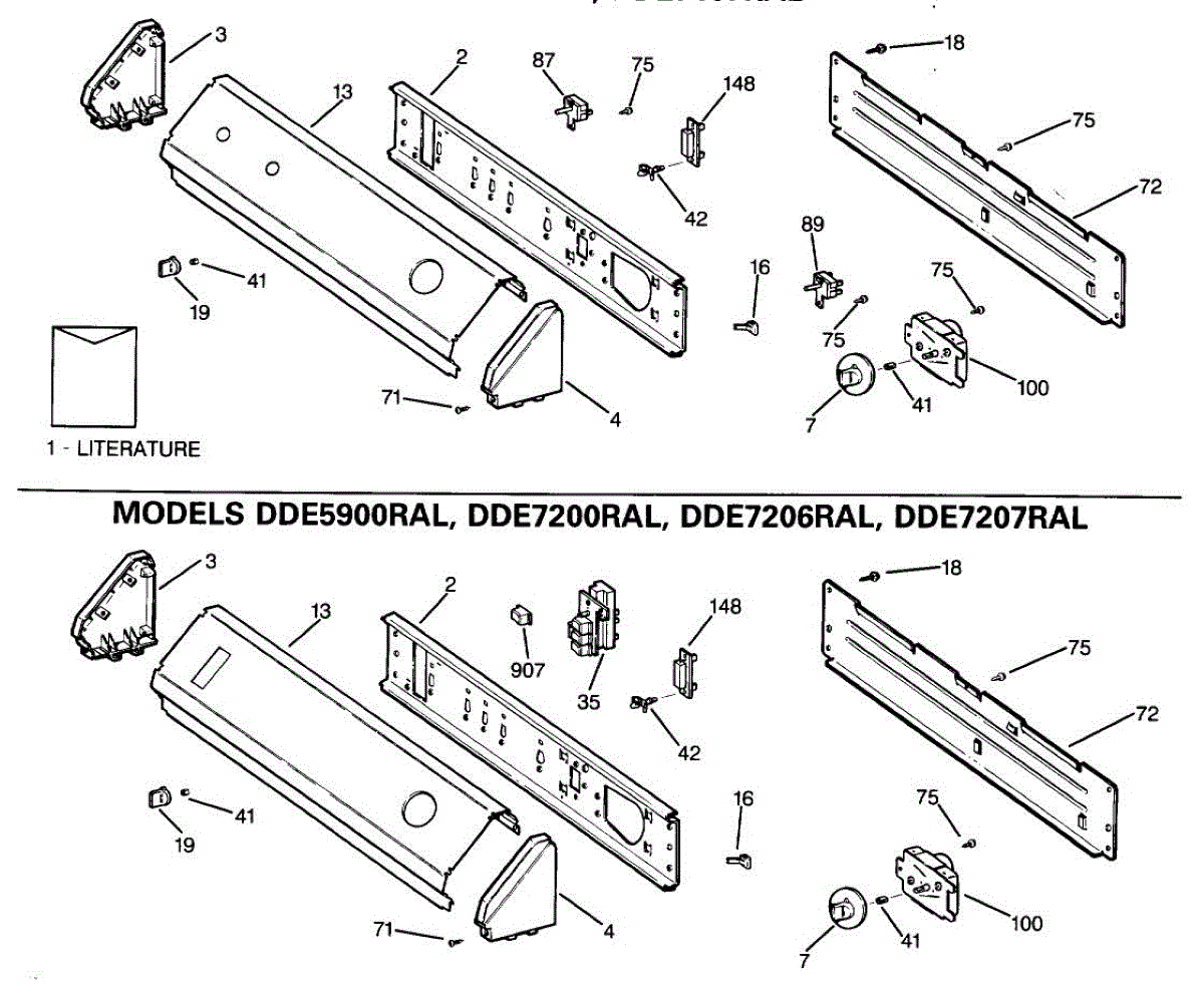 Parts for Ge DDE7207RAL: 01 - Section1 Parts