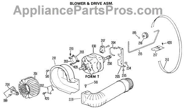 • Drives the drum via the belt and turns the blower wheel for airflow