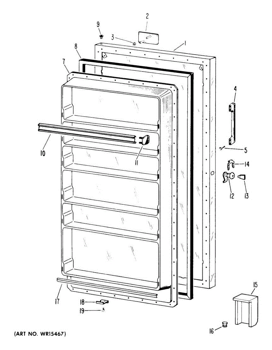 Hardware fasteners for securing refrigerator door panels and components. Includes screws, nuts, and washers for assembly. Replace missing or stripped pieces.