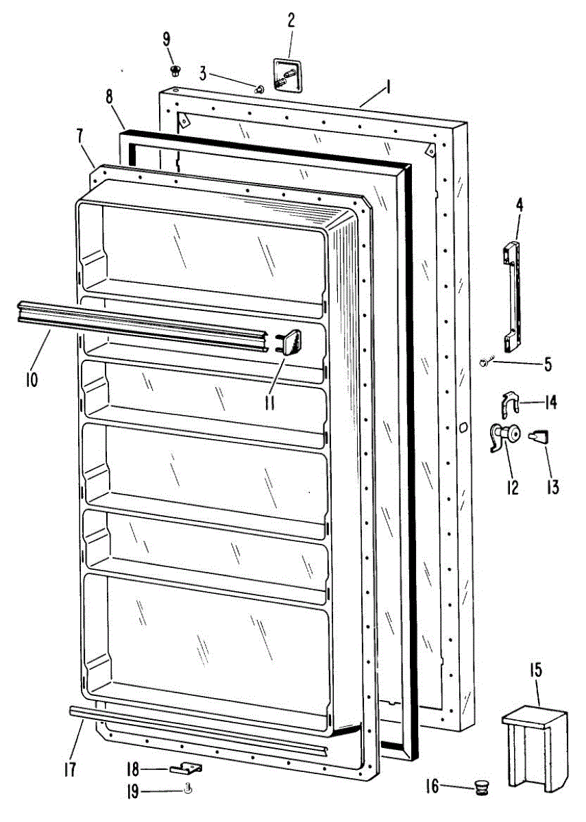 Hardware fasteners for securing refrigerator door panels and components. Includes screws, nuts, and washers for assembly. Replace missing or stripped pieces.