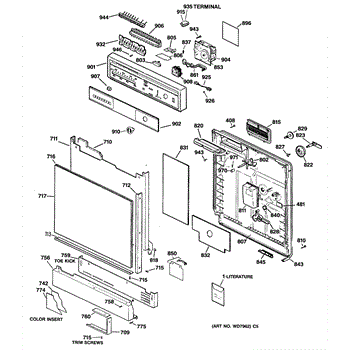 The Fill Cap Assembly is an OEM part for GE dishwashers. This assembly includes the cap that covers the opening where rinse aid or other additives are poured into the dishwasher. It ensures that the additives are securely contained and properly dispensed during the wash cycles, contributing to effective cleaning and drying.