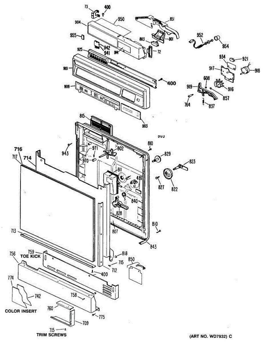 Decorative trim piece for dishwasher exterior panels. Replaces worn, cracked, or missing trim that affects appliance appearance and finish edges.