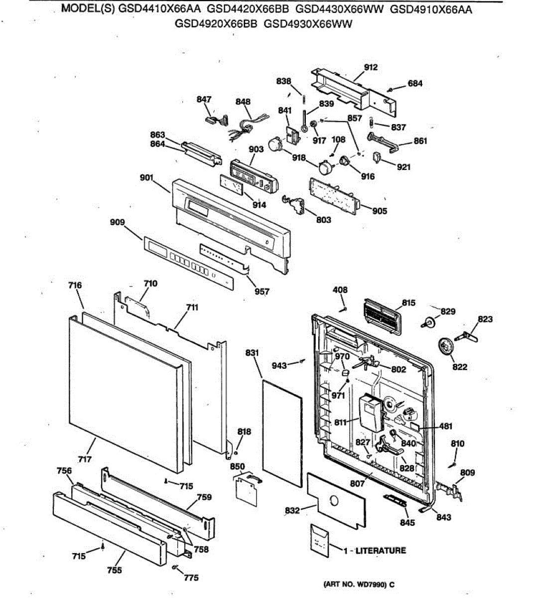 Seals dishwasher door to prevent leaks during wash cycles. Replace if water leaks from door sides or bottom, or gasket is brittle. Press-in installation.