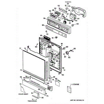 The Fill Cap Assembly is an OEM part for GE dishwashers. This assembly includes the cap that covers the opening where rinse aid or other additives are poured into the dishwasher. It ensures that the additives are securely contained and properly dispensed during the wash cycles, contributing to effective cleaning and drying.