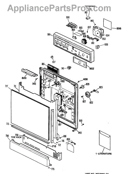 The Soap Dispenser Lever is an OEM part for GE dishwashers. It operates the soap dispenser door, releasing detergent into the dishwasher at the appropriate time during the wash cycle. This lever ensures that detergent is dispensed efficiently for optimal cleaning performance.