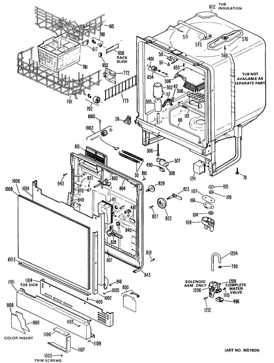 The Tub Corner Baffle is an OEM part for GE dishwashers. It is strategically placed at the corners of the dishwasher tub to prevent water from leaking out during operation. For the left side use WD8X228. Color: Black.