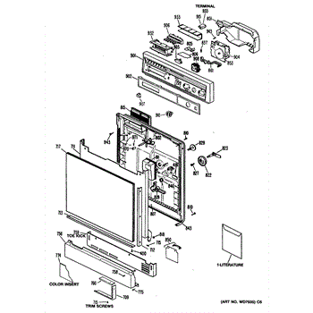 The Detergent cup cover is an OEM component for GE dishwashers. It serves to protect the detergent cup assembly while allowing for easy access. Made of durable plastic, the cover clicks securely into place during operation to prevent accidental opening.