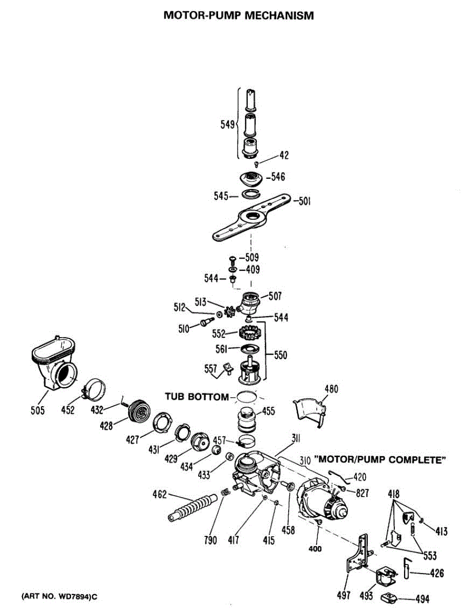 Replacement spring for dishwasher detergent cup door assembly. Provides tension to keep cup door latched closed. Replace if broken, stretched, or lost.