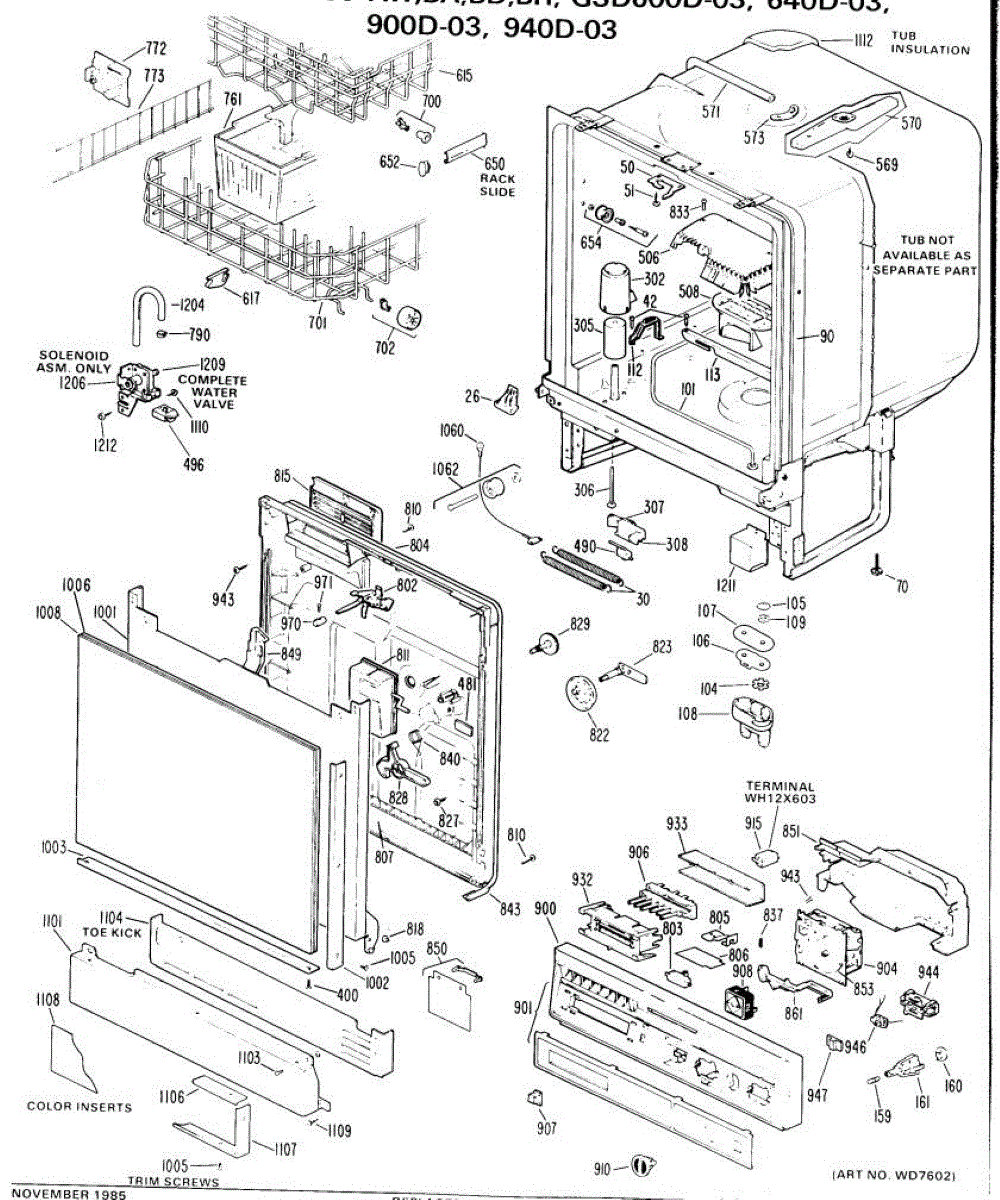 Parts for Ge GSD900D-03: 01 - Section1 Parts
