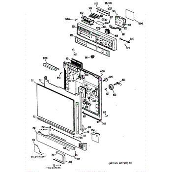 The Fill Cap Assembly is an OEM part for GE dishwashers. This assembly includes the cap that covers the opening where rinse aid or other additives are poured into the dishwasher. It ensures that the additives are securely contained and properly dispensed during the wash cycles, contributing to effective cleaning and drying.