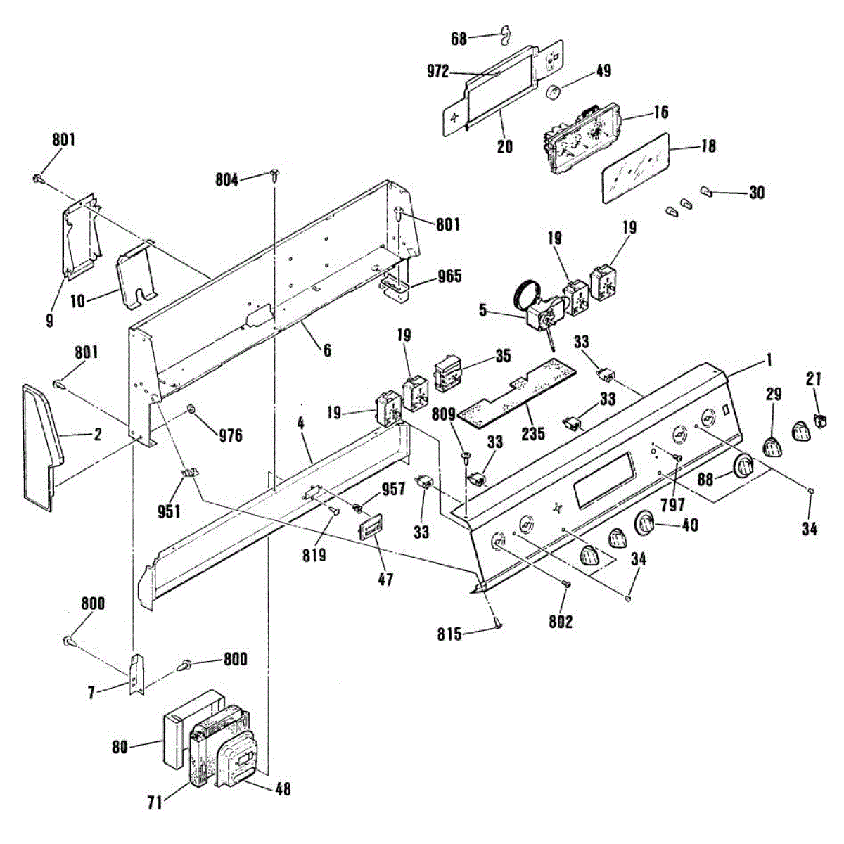 Control panel overlay for electric and gas ranges. Replaces worn, faded, or damaged overlay labels. Adheres over existing control panel surface.