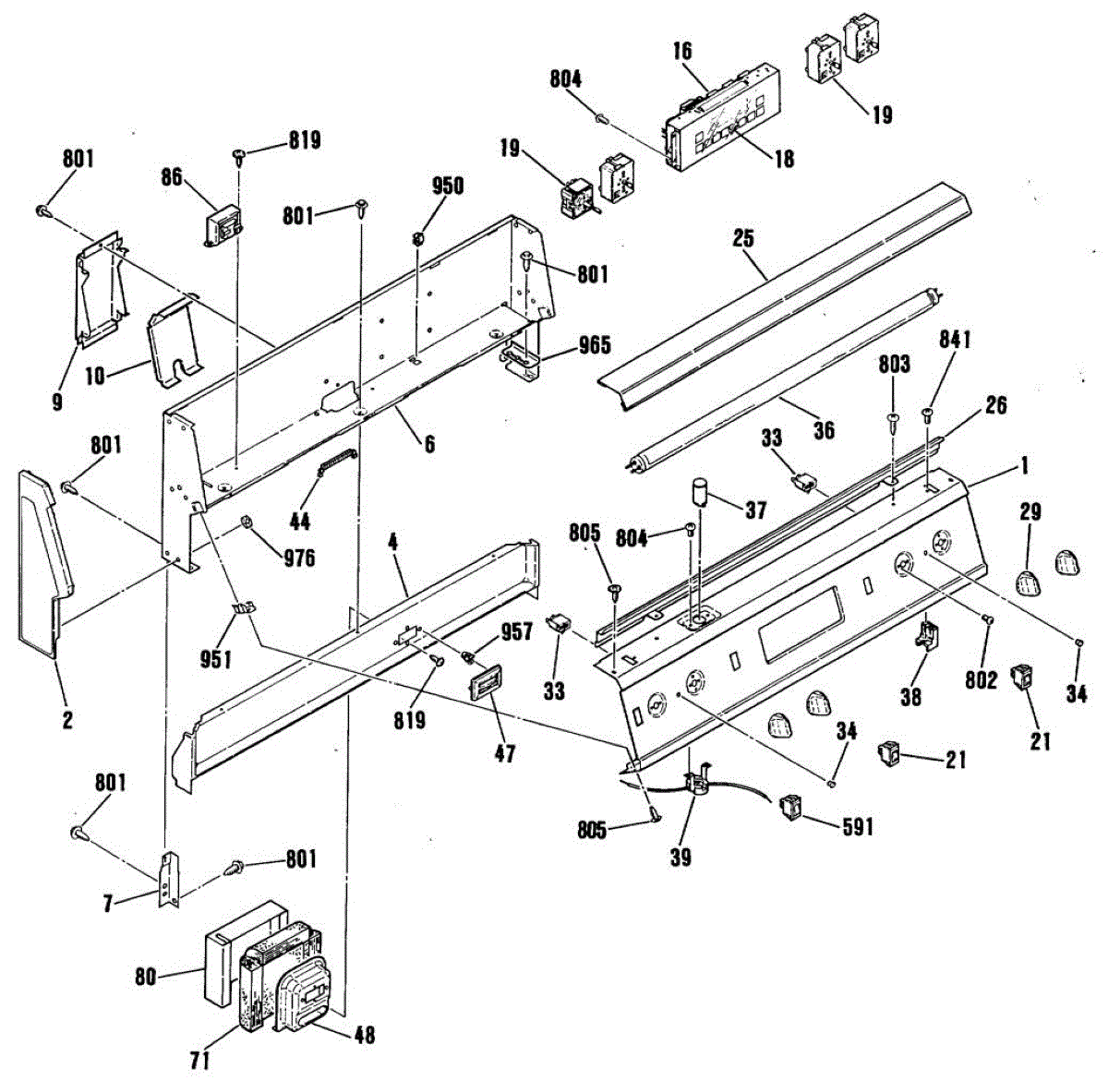 Mounting screw for ranges and ovens. Secures panels, brackets, or internal components. Replace if stripped, missing, or damaged during repair work.