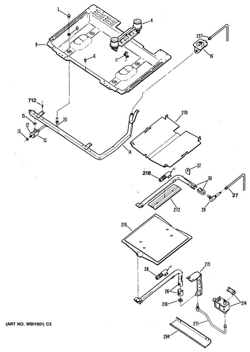 Broil shield for gas ranges. Mounts inside the oven cavity to protect components from direct heat. Replace if cracked, warped, or damaged.
