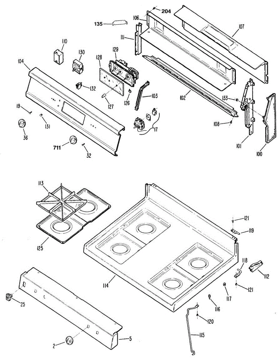 Screw and washer assembly for securing cooktop and internal range components. Replace if missing, rusted, stripped, or damaged during appliance repair.