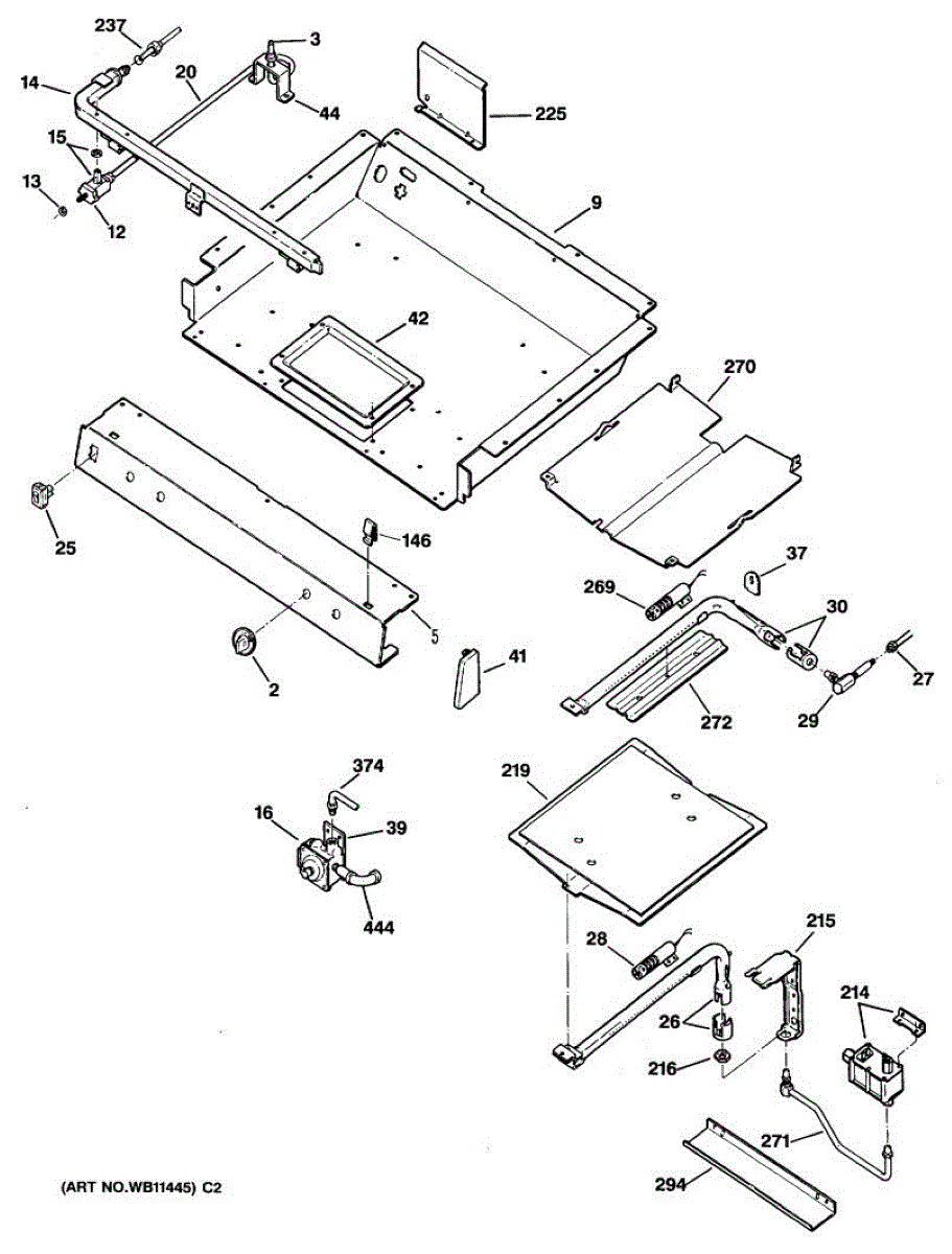 Broil shield for gas ranges. Mounts inside the oven cavity to protect components from direct heat. Replace if cracked, warped, or damaged.