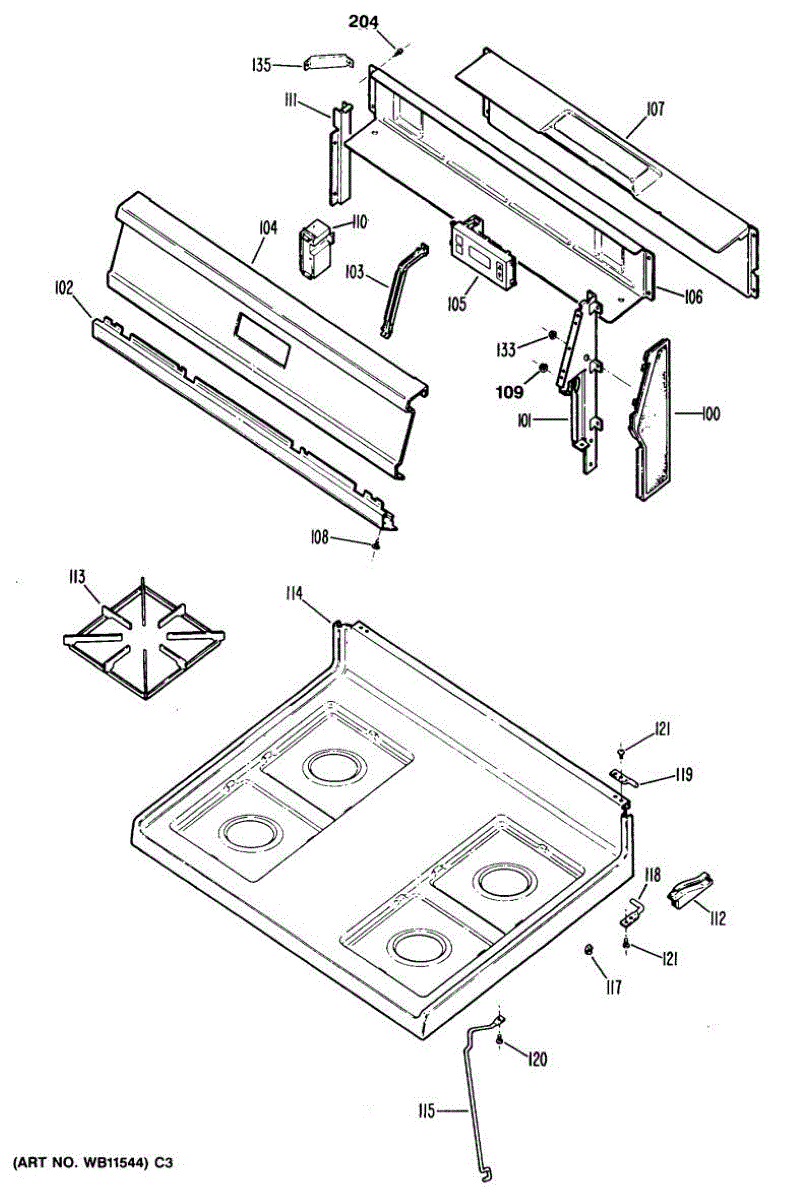 Screw and washer assembly for securing cooktop and internal range components. Replace if missing, rusted, stripped, or damaged during appliance repair.