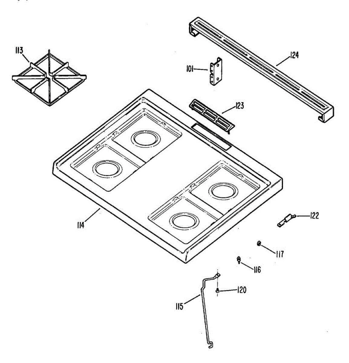 Left hinge guide secures and props up your range cooktop when lifted for cleaning or service. Replace if cracked, broken, or missing to restore secure support.