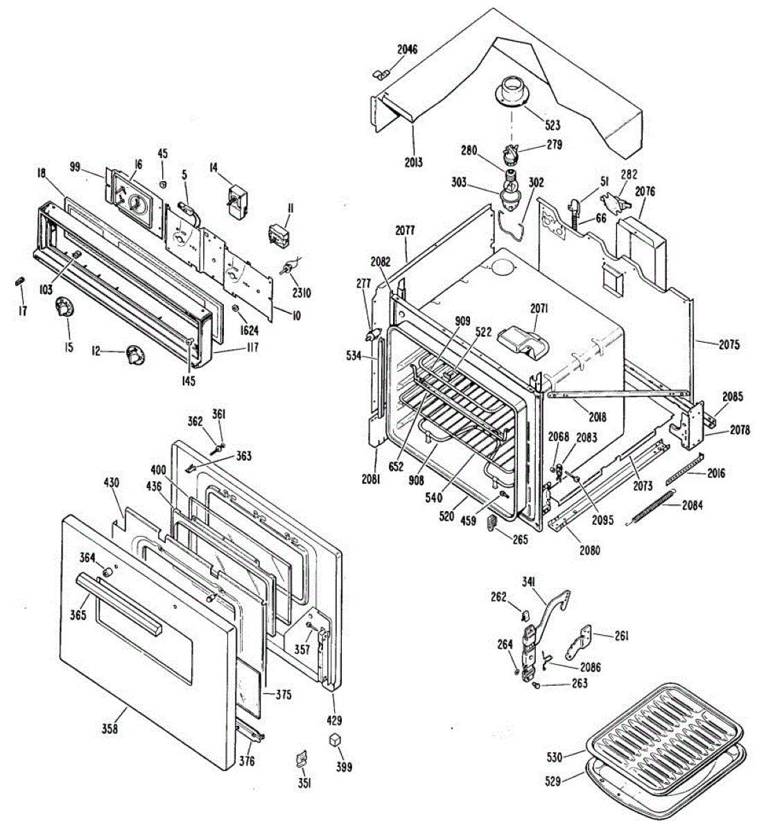 Broiler pan for ranges and ovens. Installs in main oven cavity to hold food under broiler element. Replace if cracked, warped, or heavily stained.