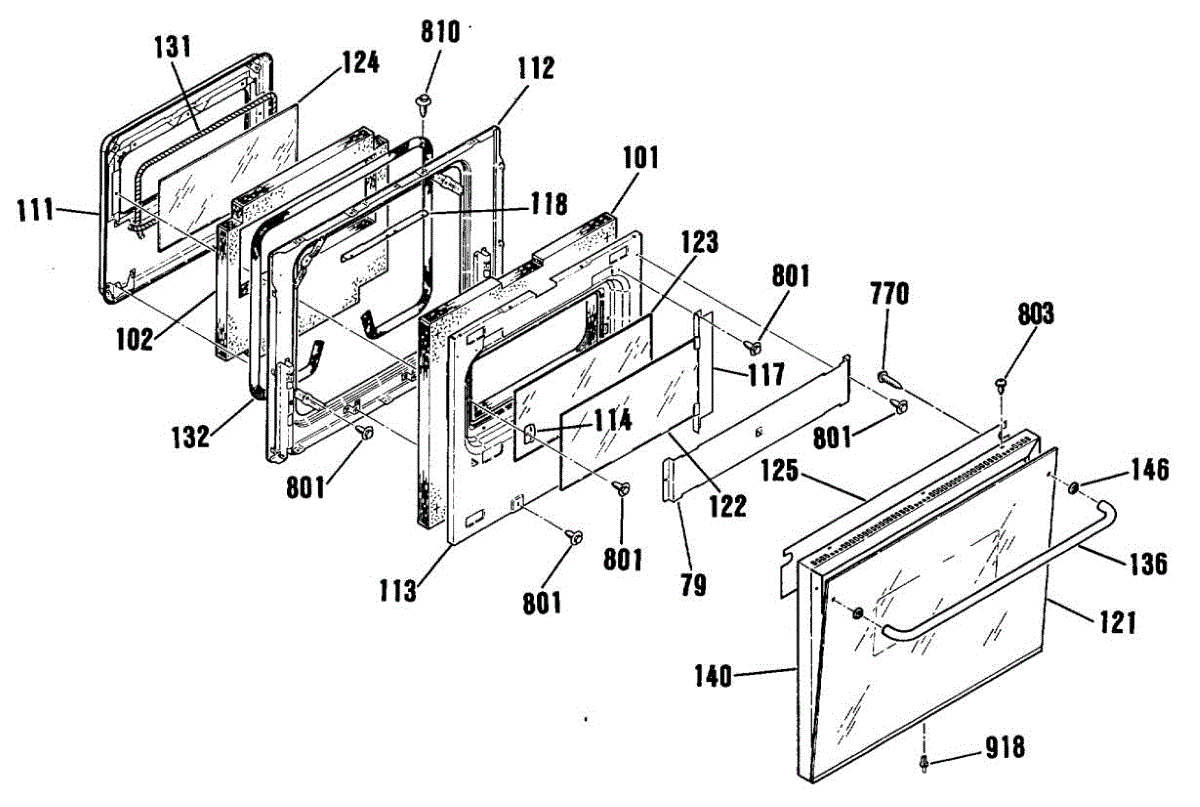 Center glass panel for oven door. Installs between inner and outer door panels. Replace if cracked, broken, or heat-damaged for safety and visibility.