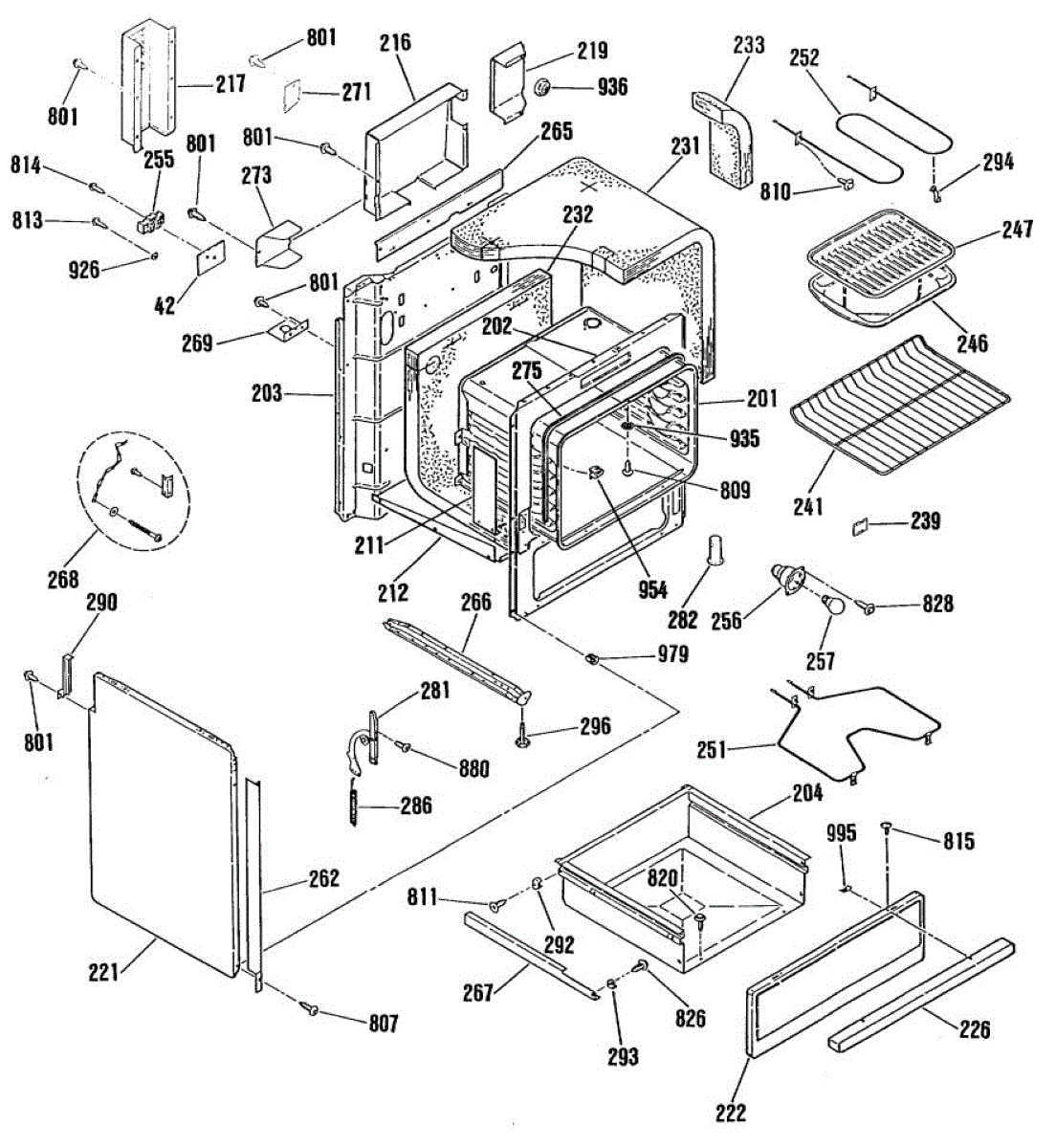 Left side oven door hinge provides smooth opening and closing operation. Replace if cracked, seized, worn, or binding. Mounts to oven cavity interior.