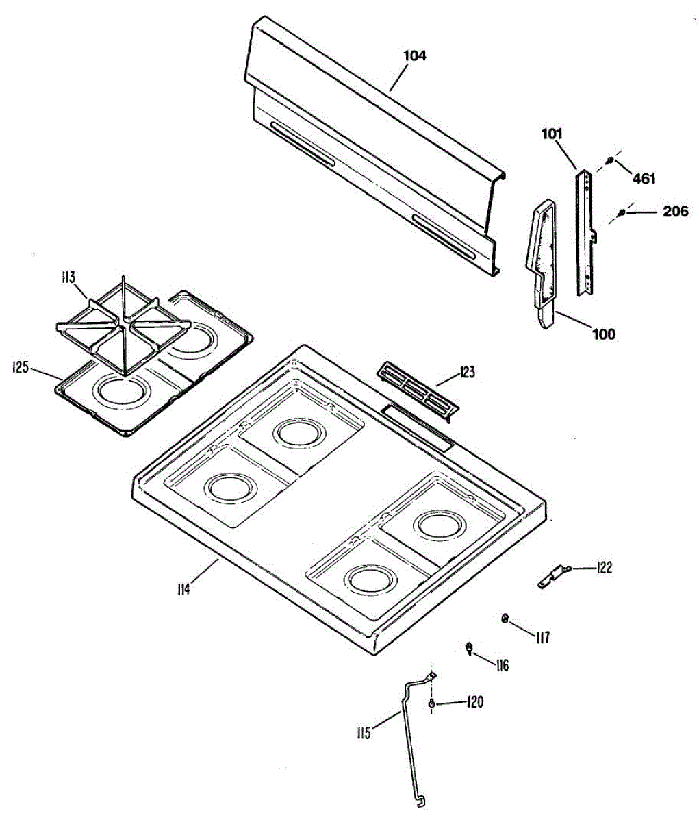 Left hinge guide secures and props up your range cooktop when lifted for cleaning or service. Replace if cracked, broken, or missing to restore secure support.
