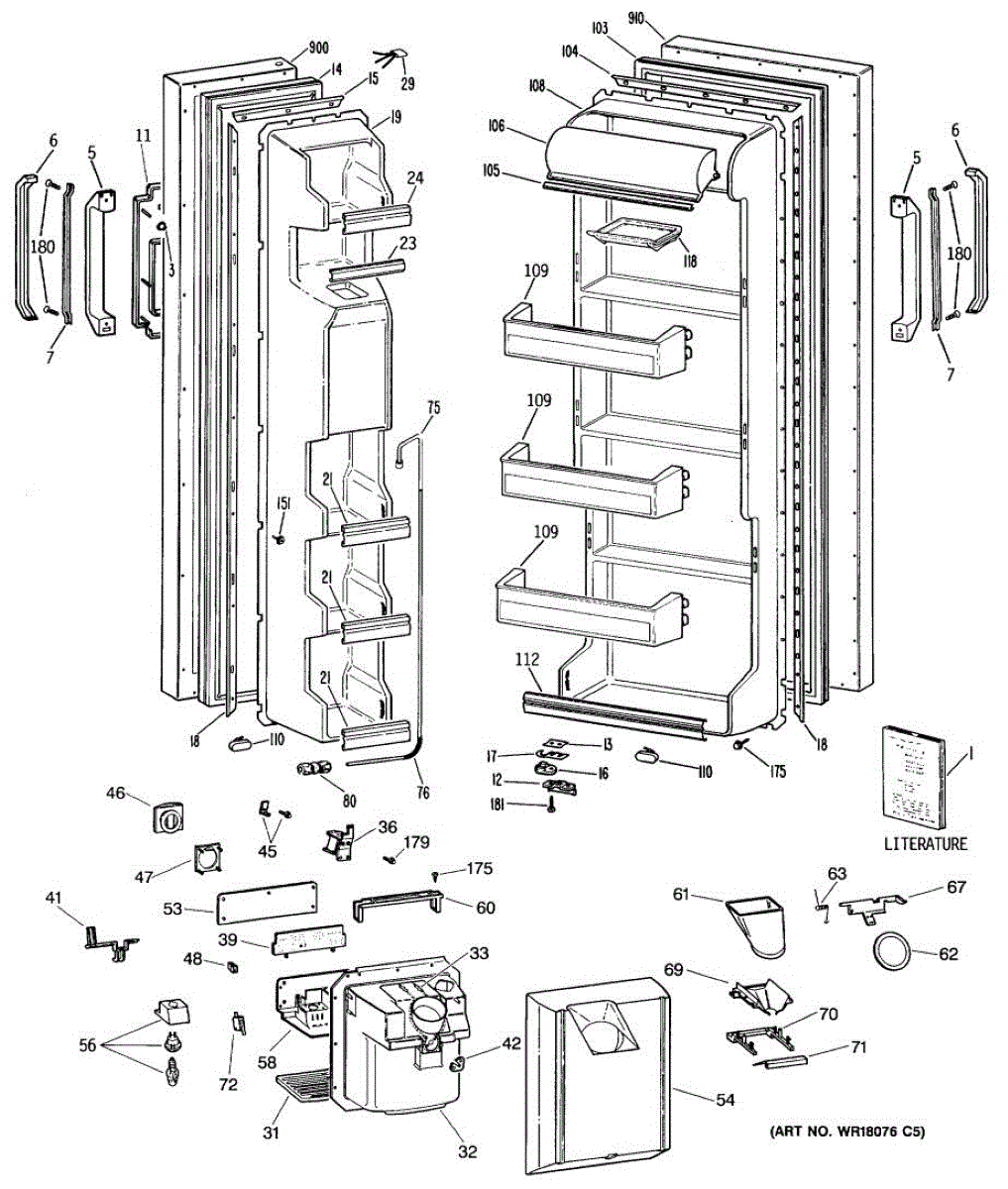 Ice dispenser door assembly seals the ice chute opening on your refrigerator. Replace if cracked, warped, or the rubber gasket is damaged and leaking air.