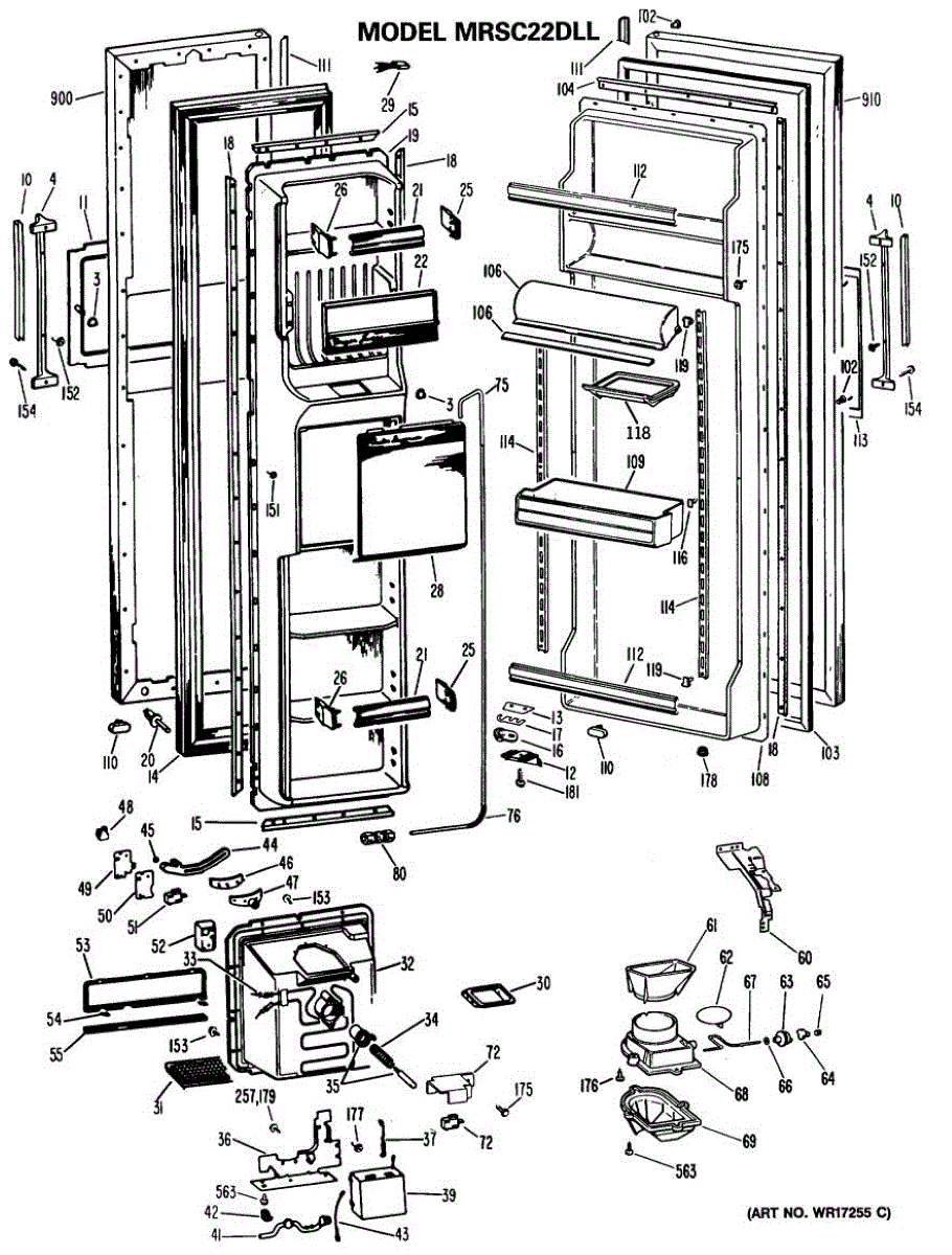 Hardware fasteners for securing refrigerator door panels and components. Includes screws, nuts, and washers for assembly. Replace missing or stripped pieces.