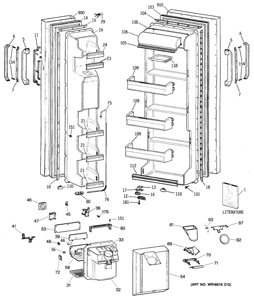 Ice dispenser door assembly seals the ice chute opening on your refrigerator. Replace if cracked, warped, or the rubber gasket is damaged and leaking air.