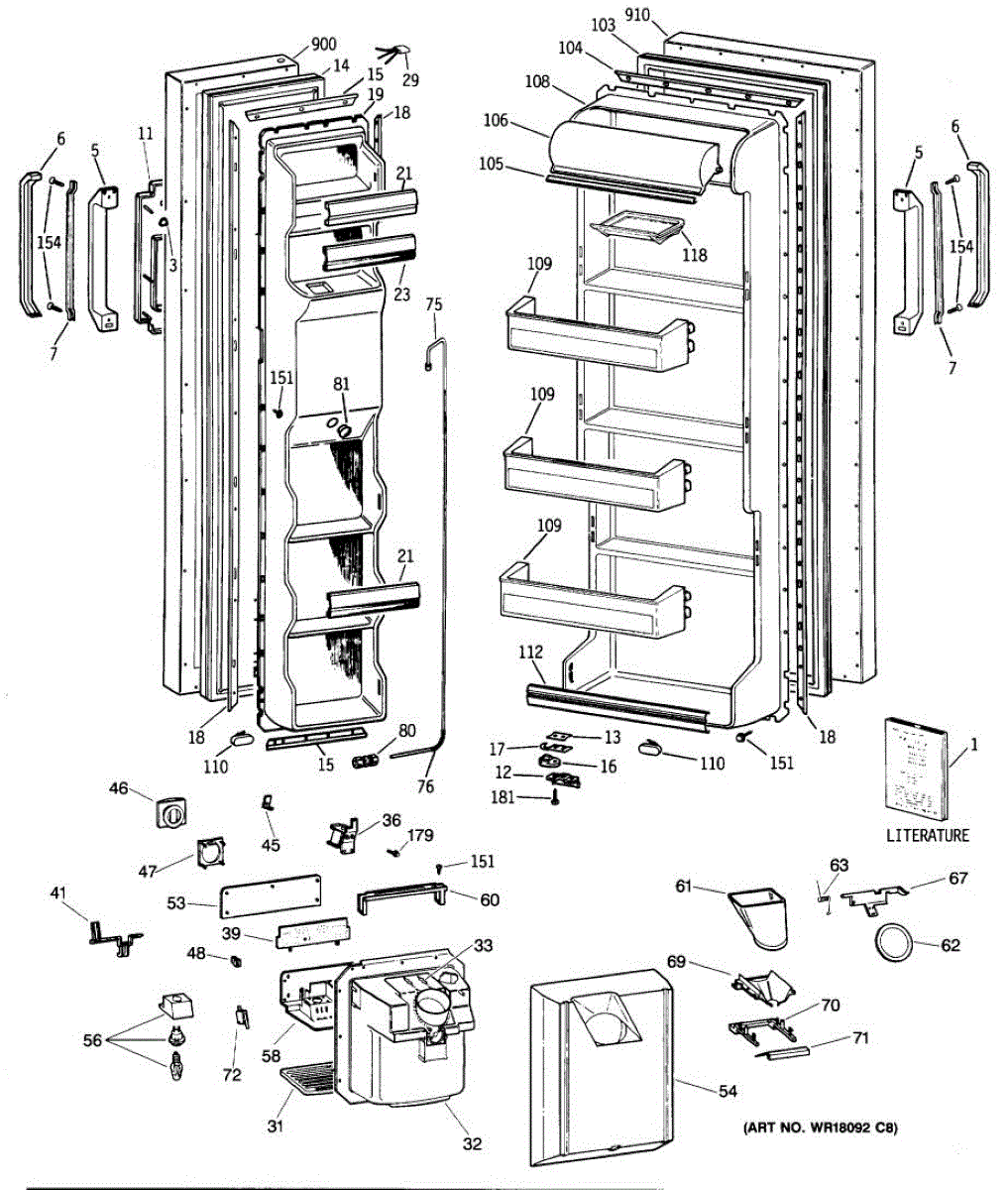 Ice dispenser door assembly seals the ice chute opening on your refrigerator. Replace if cracked, warped, or the rubber gasket is damaged and leaking air.
