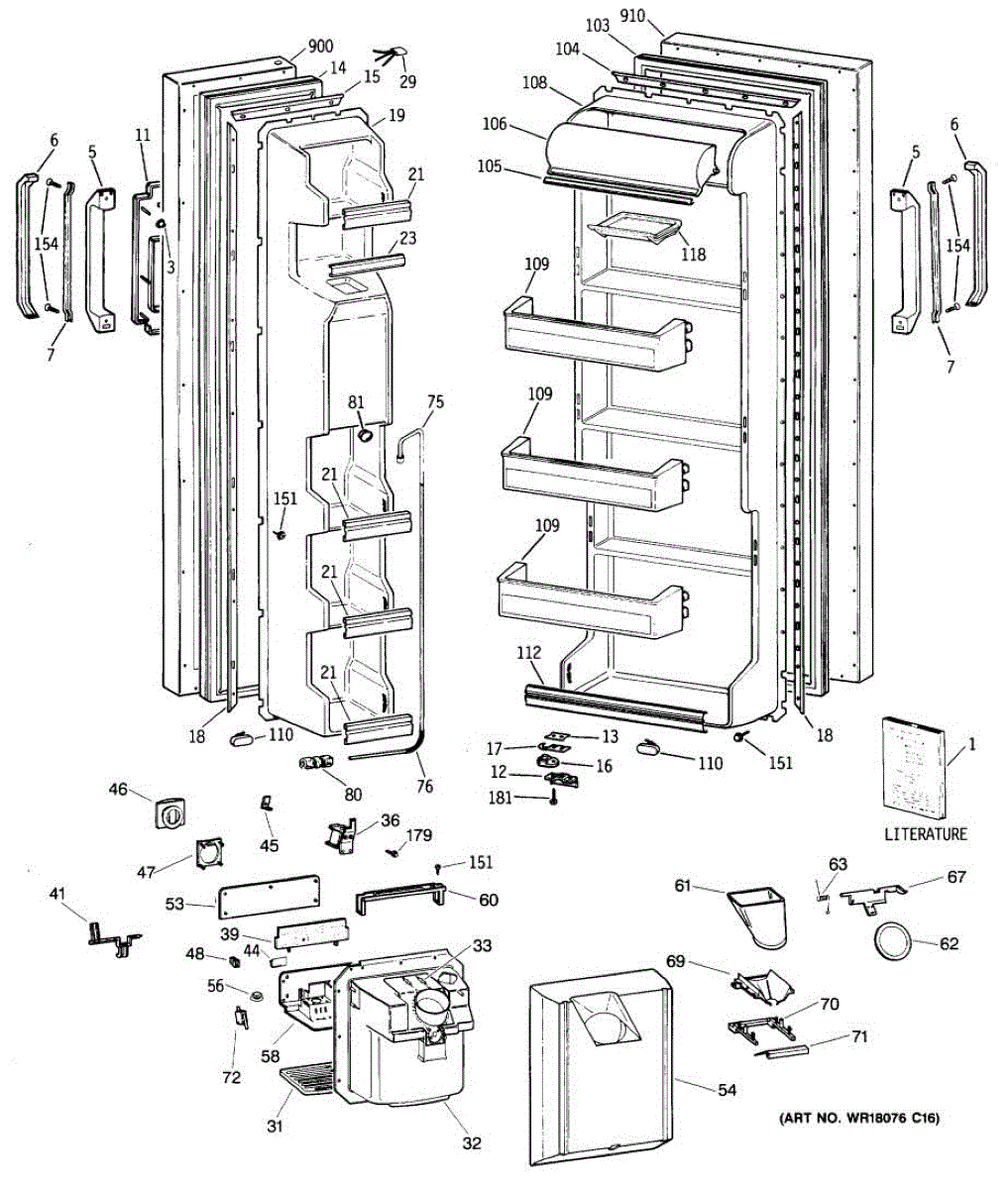 Ice dispenser door assembly seals the ice chute opening on your refrigerator. Replace if cracked, warped, or the rubber gasket is damaged and leaking air.