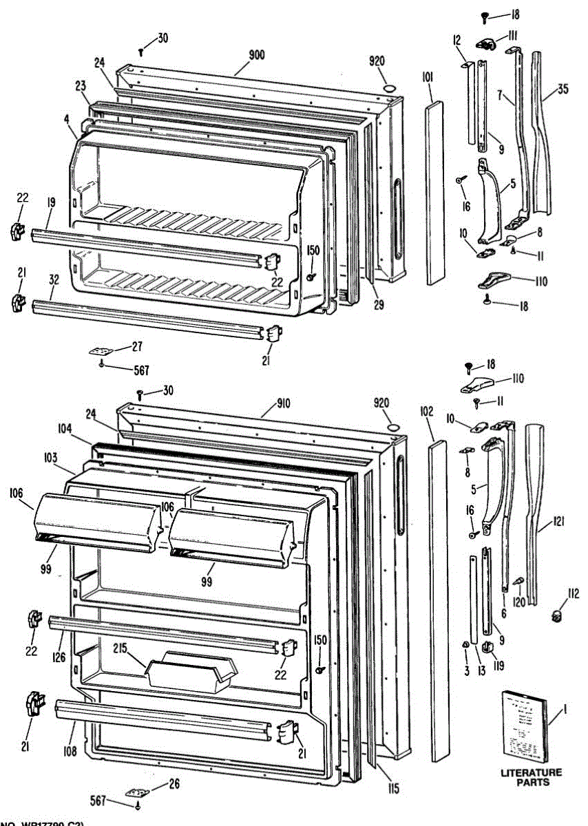Hardware fasteners for securing refrigerator door panels and components. Includes screws, nuts, and washers for assembly. Replace missing or stripped pieces.