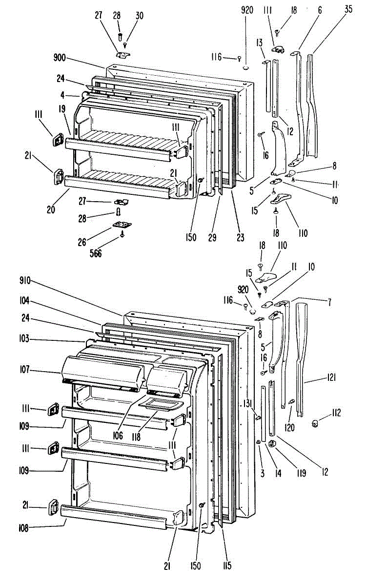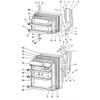 Hardware fasteners for securing refrigerator door panels and components. Includes screws, nuts, and washers for assembly. Replace missing or stripped pieces.