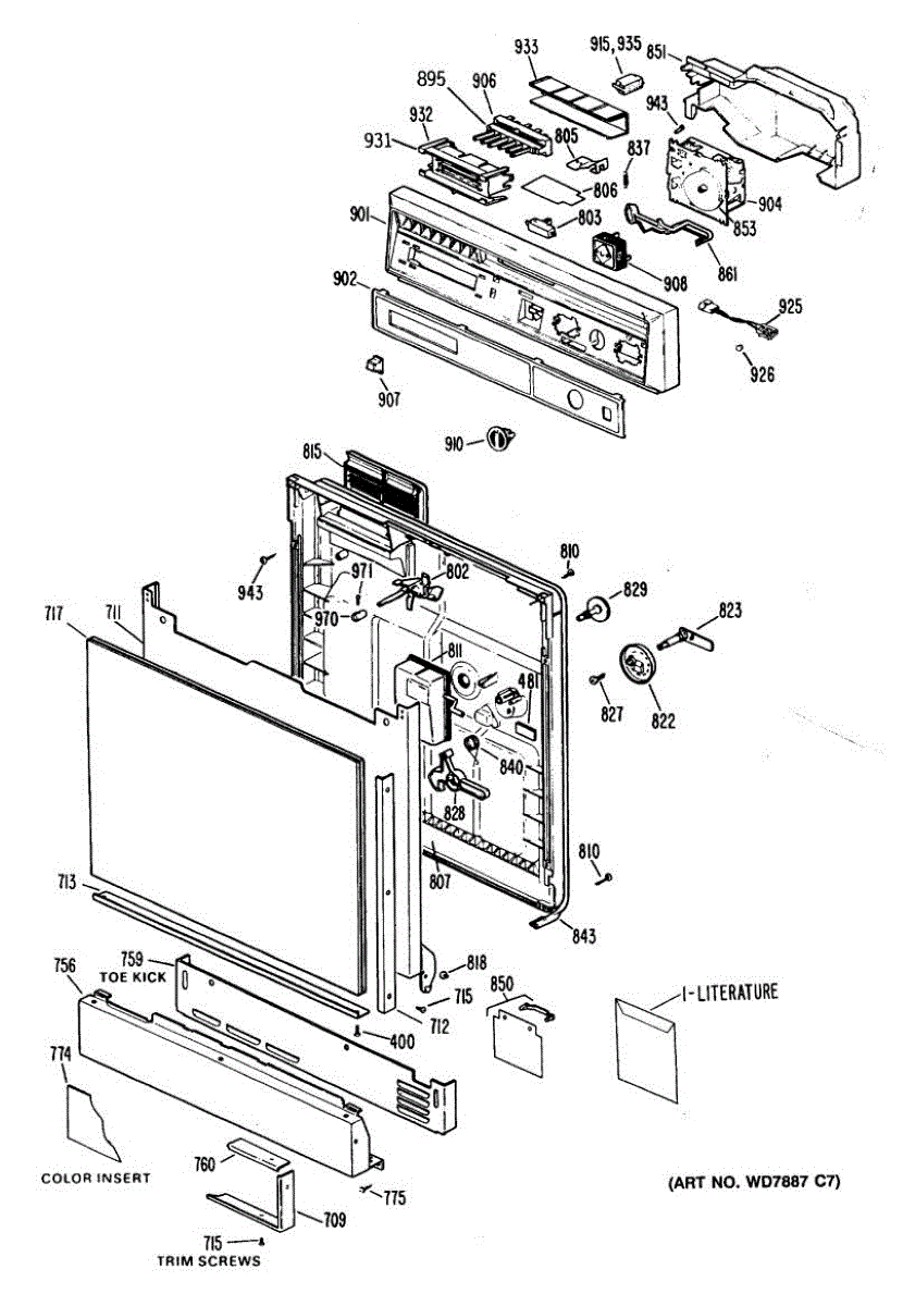 Seals dishwasher door to prevent leaks during wash cycles. Replace if water leaks from door sides or bottom, or gasket is brittle. Press-in installation.