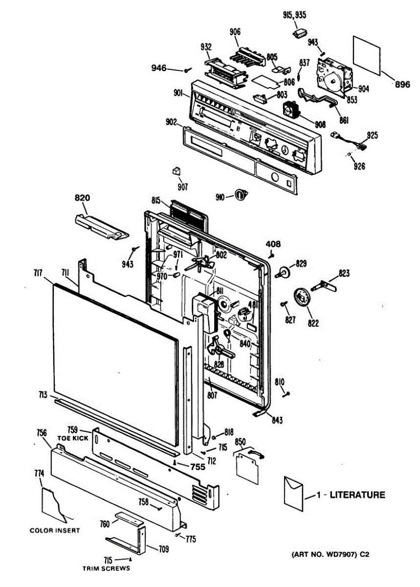 The Fill Cap Assembly is an OEM part for GE dishwashers. This assembly includes the cap that covers the opening where rinse aid or other additives are poured into the dishwasher. It ensures that the additives are securely contained and properly dispens
