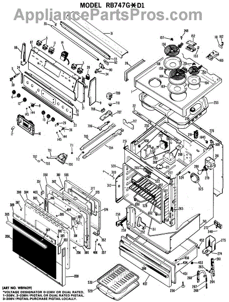 Parts for Ge RB747GXD1: 01 - Section1 Parts