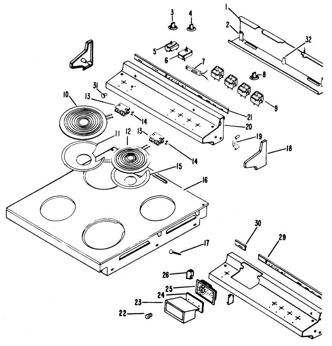 This center trim is the molded bezel that fits the front center of the cooktop/oven control area, restoring a finished look and protecting the control panel edges from heat and grime. What it does: