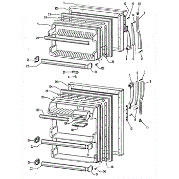 • Generally snaps into existing mounting pegs; remove old door by lifting or releasing retaining tabs