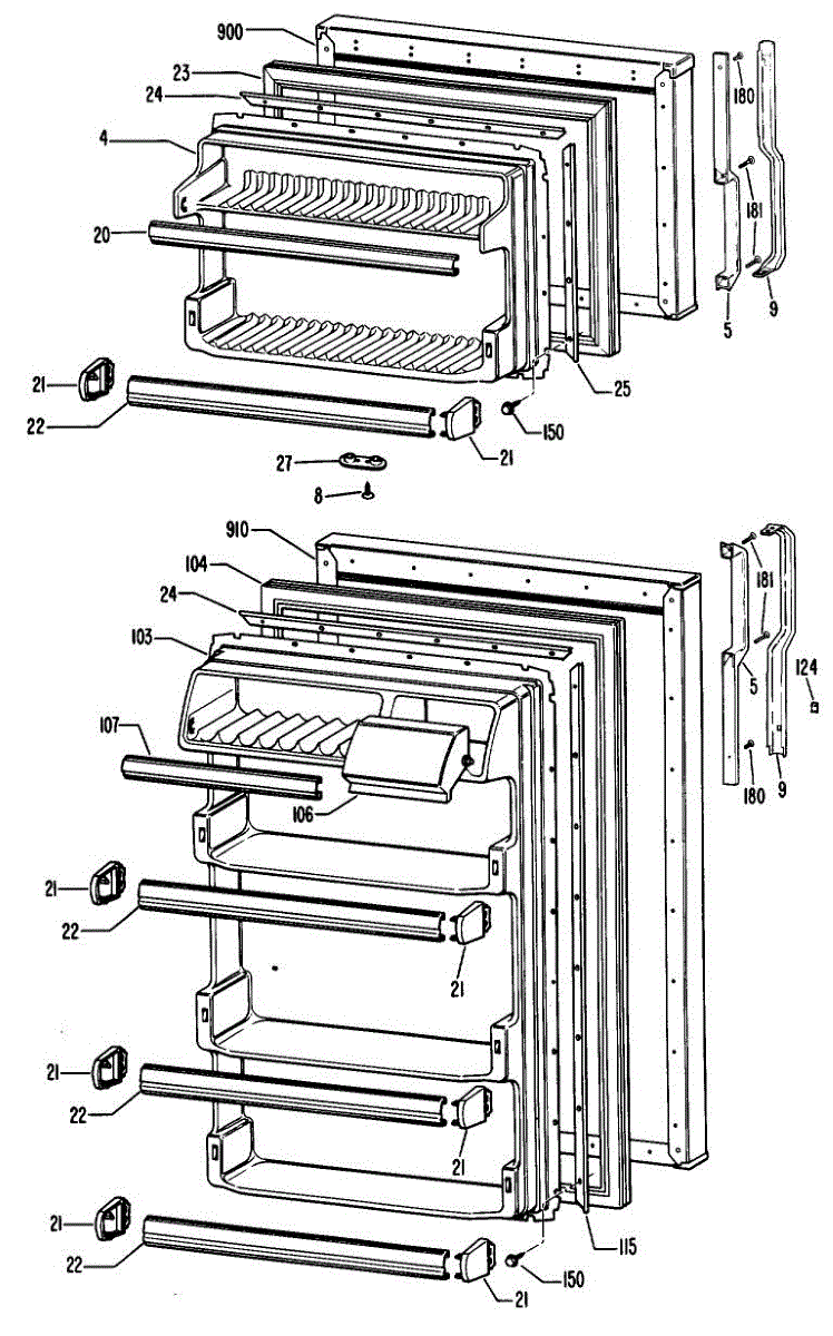 Replacement door shelf bar for top-mount refrigerators. Installs on the door to retain items on shelves. Replace if cracked, broken, or missing.